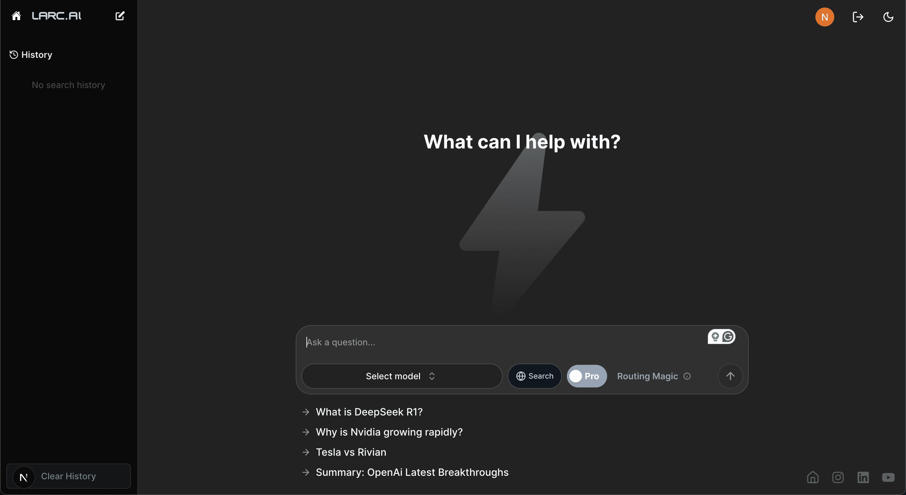 Larc.AI unites 1000+ AI models and agents—LLMs, image, and video generators—into a single intuitive platform. Our smart Model Router ensures you always get the best AI for your project, boosting creativity, accuracy, and speed across every workflow.